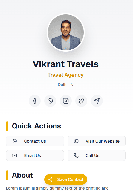 Share your digital card via text, email, or social media with a single click.